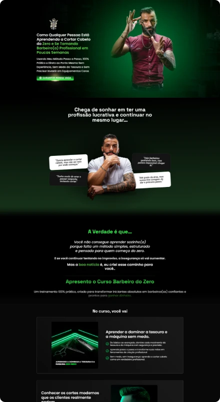 Estrutura focada em vendas cada seção é criada para conduzir o visitante à ação